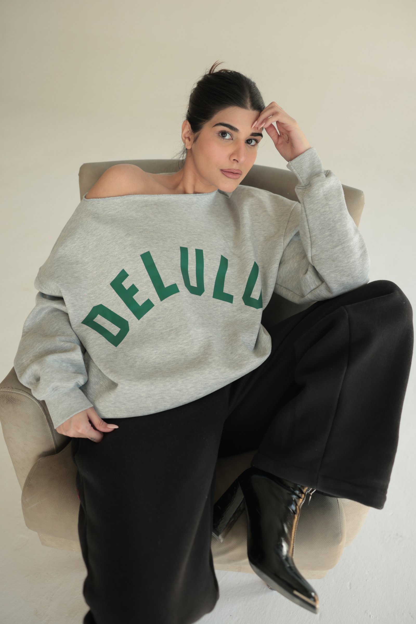 - Delulu Off Shoulder Sweatshirt